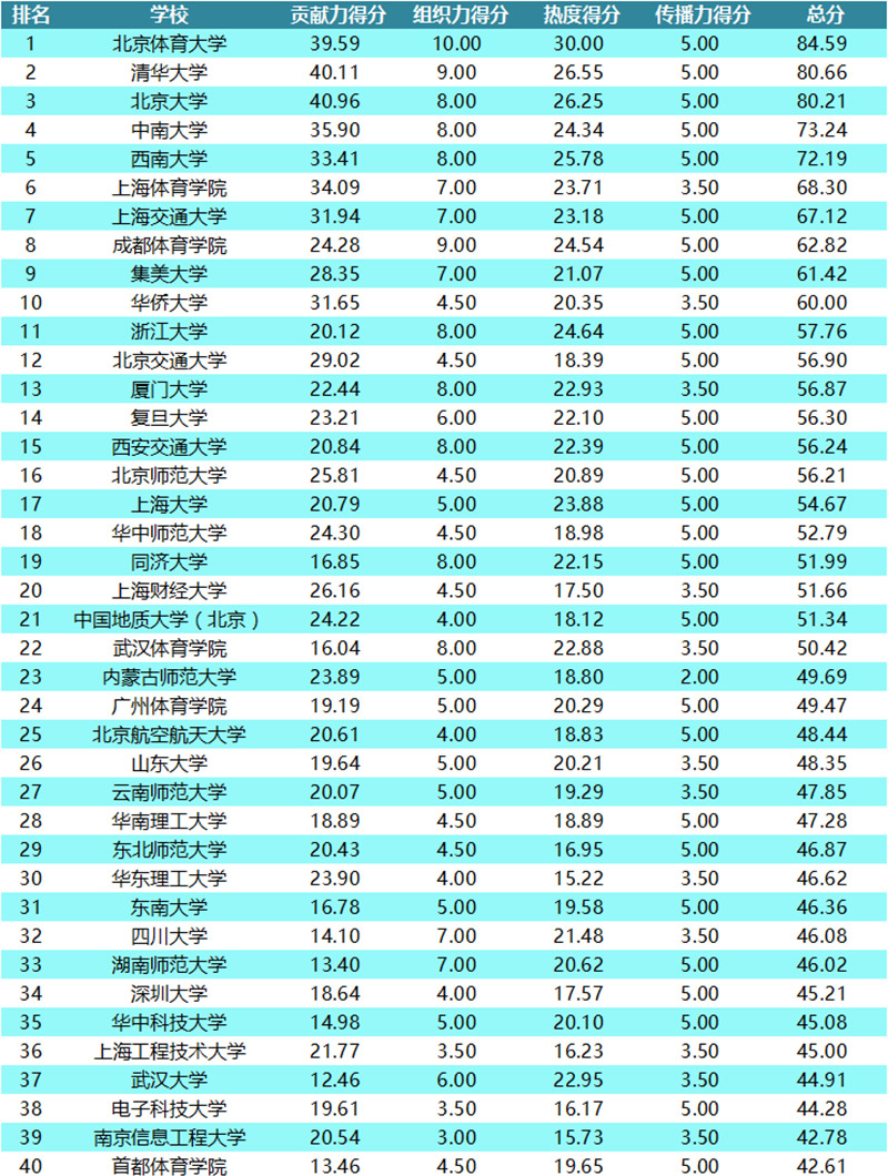 我校位列2016中国高校体育竞赛榜第39名,江苏第2名