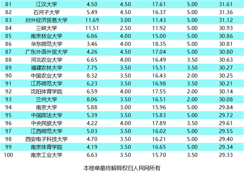 4月19日,由人民体育和人民网舆情监测室联合制作、中国大学生体育协会提供数据支持的“2016中国高校体育竞赛榜”出炉,共涉及赛事60余个、指标20余项,最后从贡献力、组织力、传播力和影响力四个方面综合评判。我校总分位列全国高校第39名、江苏高校第2名,贡献力(纯体育成绩)得分位列全国高校第24名、江苏高校第1名。