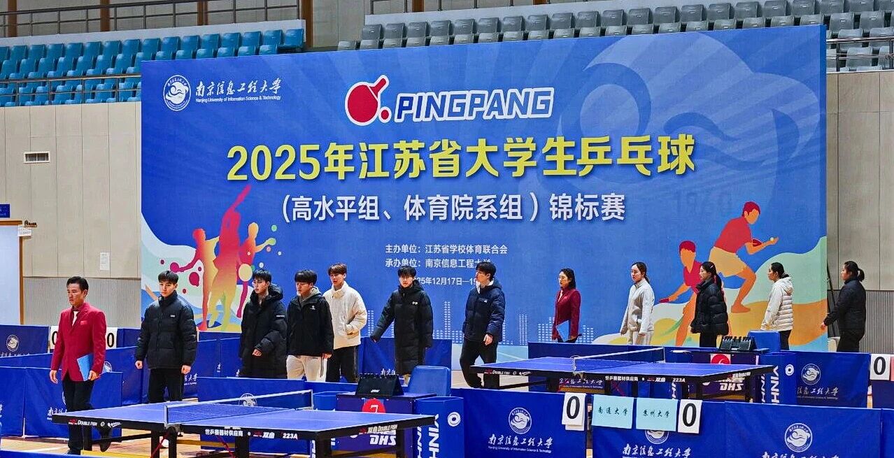 2025年江苏省大学生乒乓球(高水平组、体育院系组)锦标赛12月17日-19日在南京信息工程大学举行。本次赛事由江苏省学校体育联合会主办,江苏省学校体育联合会高校工作委员会、南京信息工程大学承办。赛事设有男子团体、女子团体、男子单打、女子单打等七个竞赛项目,省内12所院校110余名运动员参加比赛。