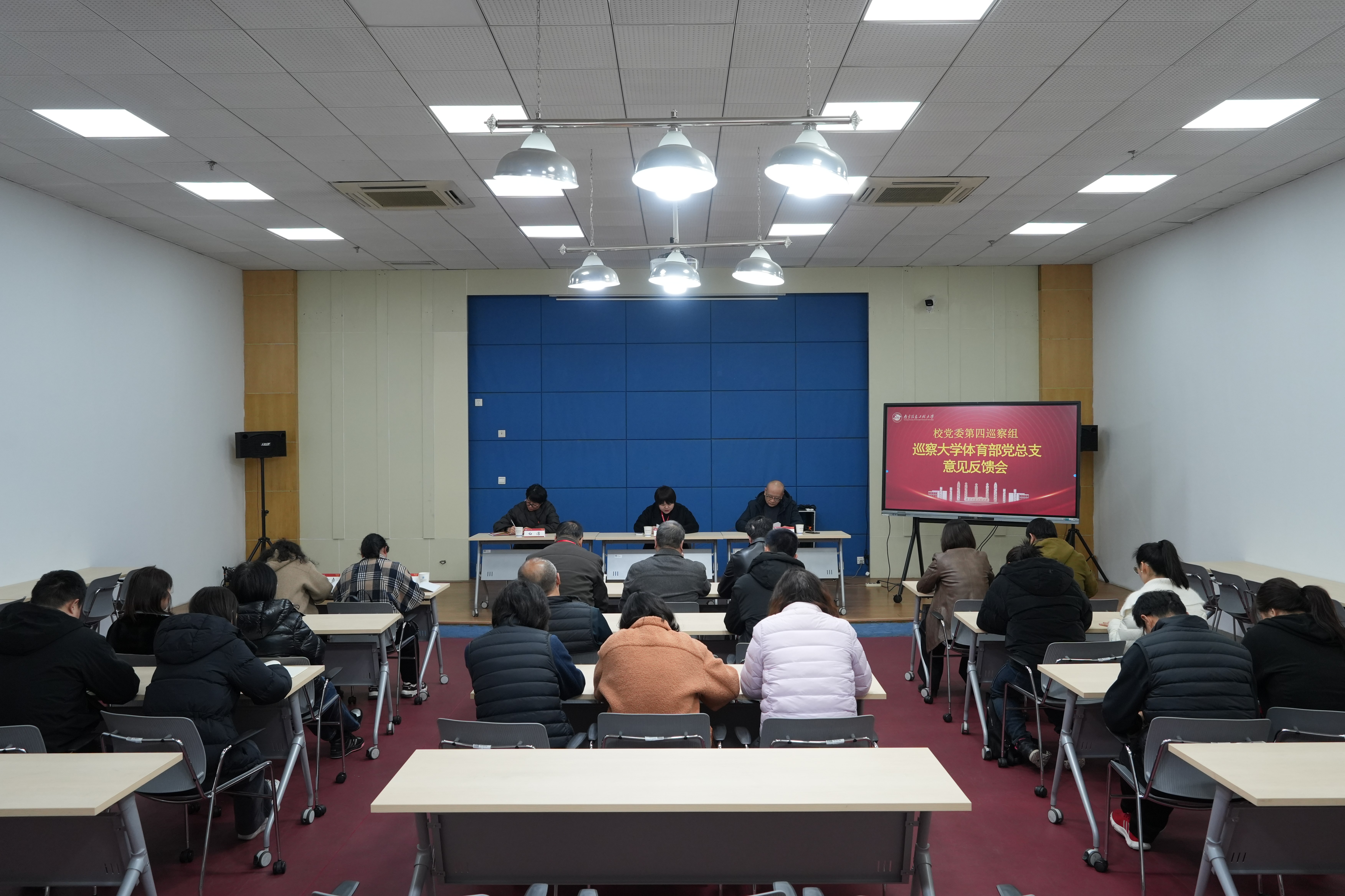 1月16日下午,校党委第五轮第四巡察组巡察大学体育部党总支意见反馈会在体育馆140会议室召开。校党委常委、副校长、第四巡察组组长刘佳同志,第四巡察组副组长李健同志及第四巡察组成员出席会议。体育部党政领导班子成员、科级干部、党支部书记、教职工代表参加了本次巡察反馈会。会议由体育部党总支书记焦冶同志主持。