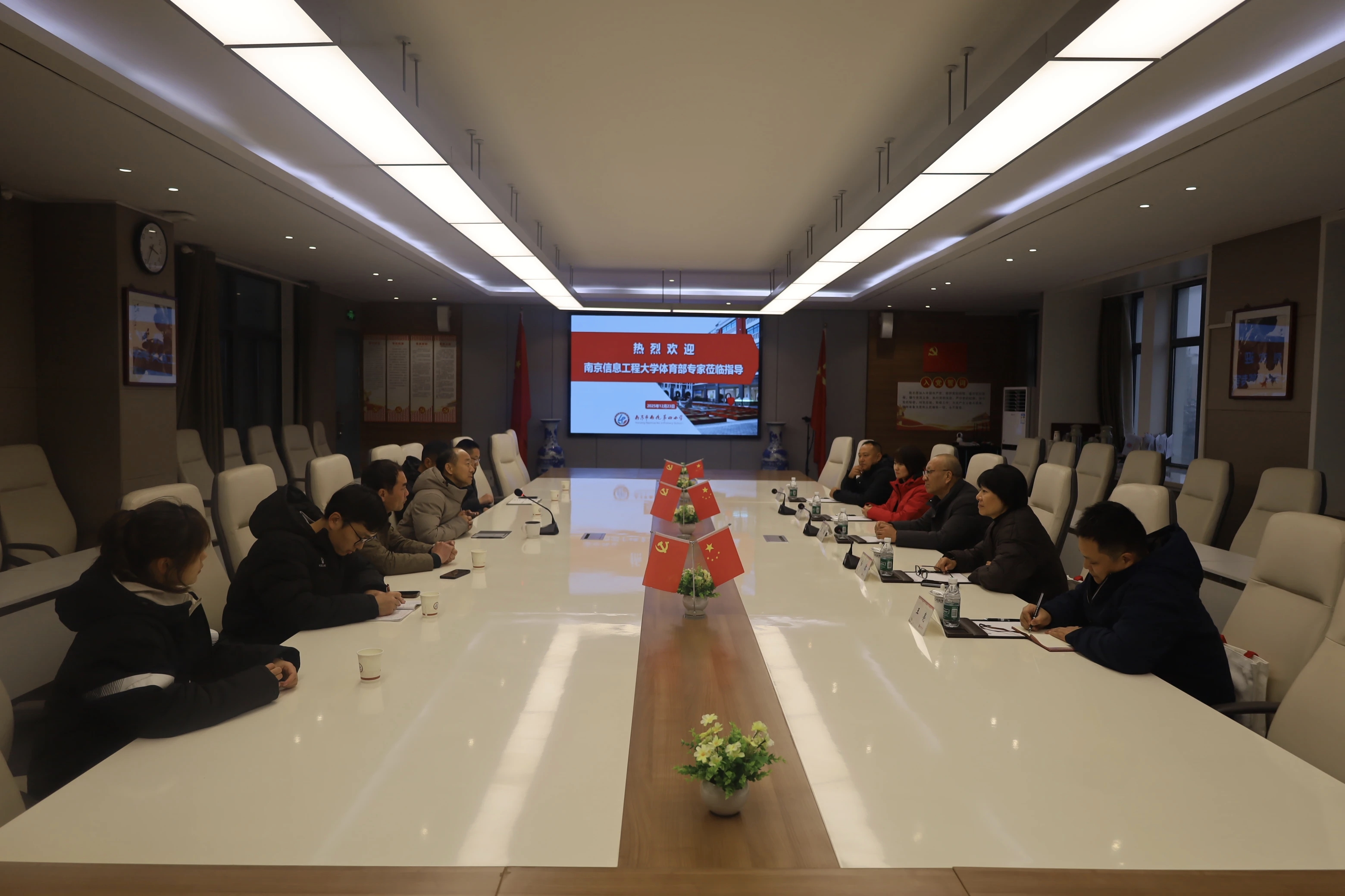 2025年12月23日下午,南京信息工程大学体育部党总支书记焦冶、体育部主任白洁等一行赴南化四小参观交流,与葛春庭校长及校领导班子就体育教学训练发展、校际资源共享等议题展开深入探讨。