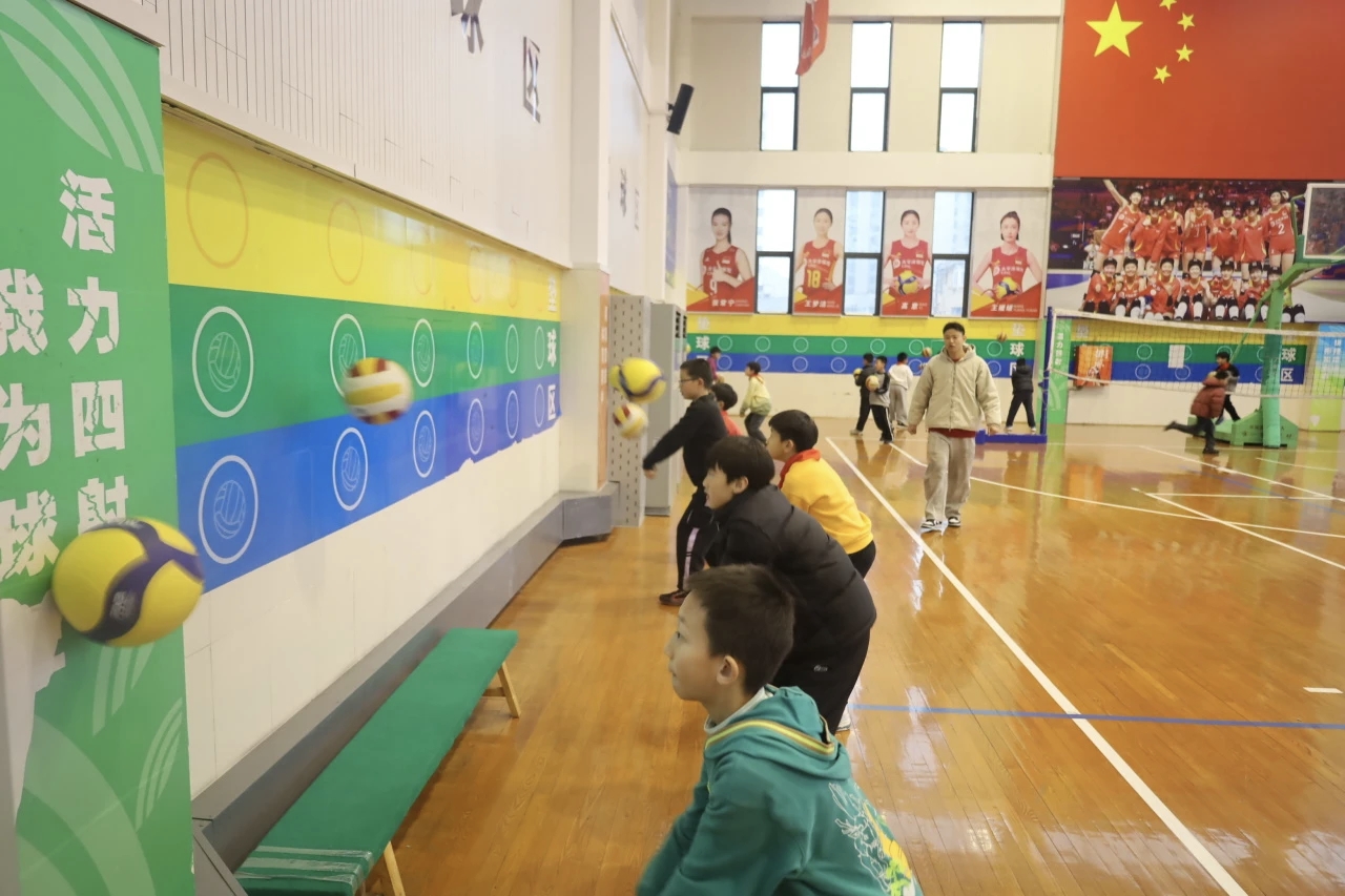 在葛校长引导下一行人参观了校园,了解办学历史,并驻足体育特色文化墙,聆听奖杯、照片背后的故事。随后参观了“怡动空间”及地下运动区域,学校通过合理利用场地资源,保障了学生运动需求。体育馆内,葛校长重点介绍了排球文化,从教练团队、场馆设施到刻苦训练的队员,全方位呈现排球教学训练的扎实根基。嘉宾们现场观摩男女排队员训练,对专业化水平和校园排球文化给予赞扬。